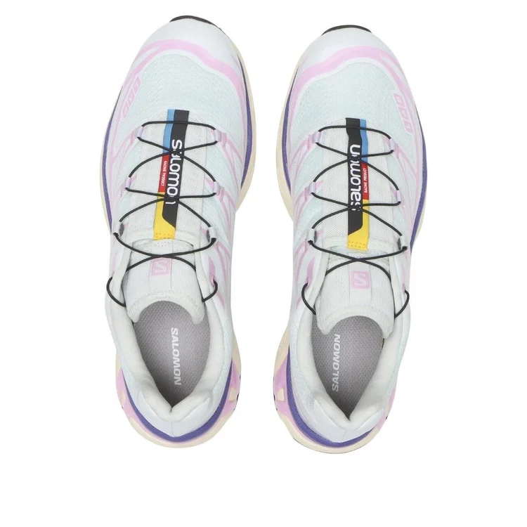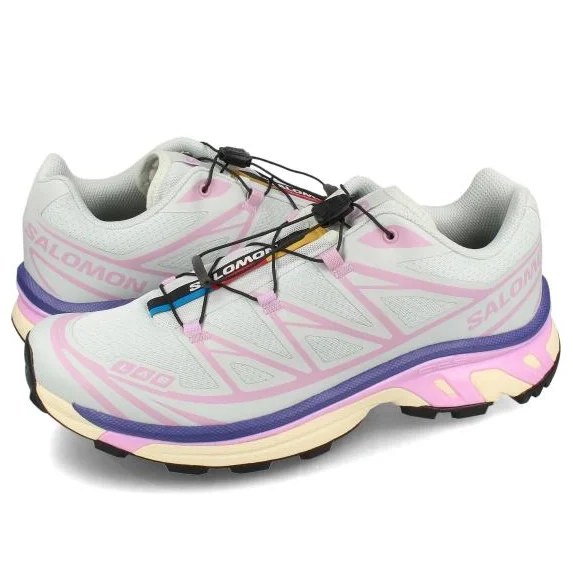 Salomon XT-6 Orchid Bouquet: A stylish, high-performance trail runner. Durable, breathable mesh upper with Quicklace system for secure fit. Agile Chassis & Contagrip outsole provide superior stability and traction. Dual-density EVA cushioning ensures comfort on any terrain.
